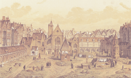 Wurde Ende des 18. Jahrhunderts aus sanitären Gründen geräumt. Die ausgegrabenen Überreste füllten damals einhundertsiebzehn Säcke und wurden in einem anderen Friedhof verscharrt
